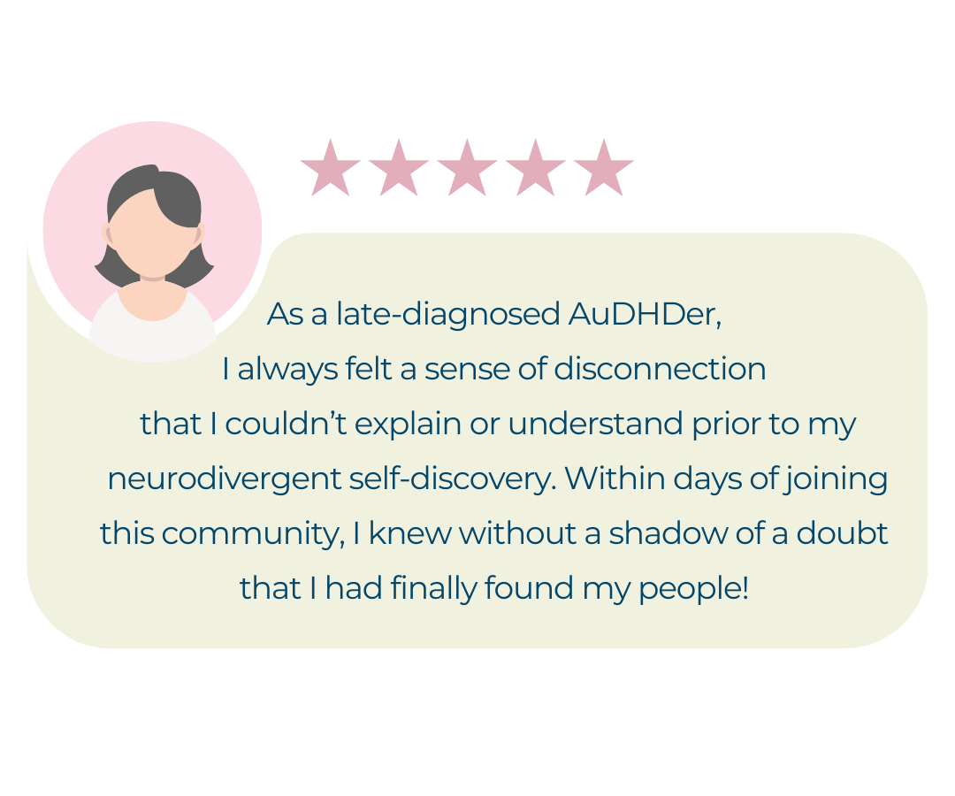 That's why I set out to create a different kind of communityāa welcoming haven for neurodivergent adults, especially those who are new to their journey of self-discovery and identity. This space is designed to be a soft landing pad where individuals can come together to connect, learn, and grow. My hope is that this will be a place for you to find your people. A place where you can truly be yourself and feel accepted for your whole self. A place where you can be a part of building a truly affirming neurodiverse community.